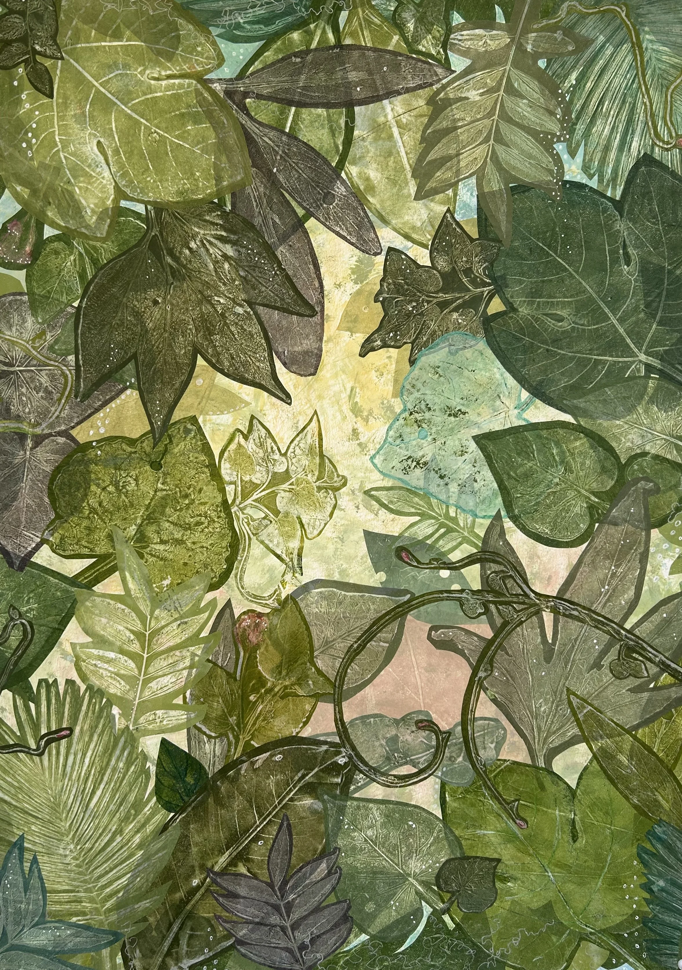 Botanical elements are a frequent theme in my collage art. Come see how I make unique collage papers using natural materials and a simple printing process.
