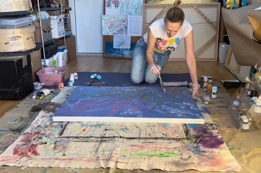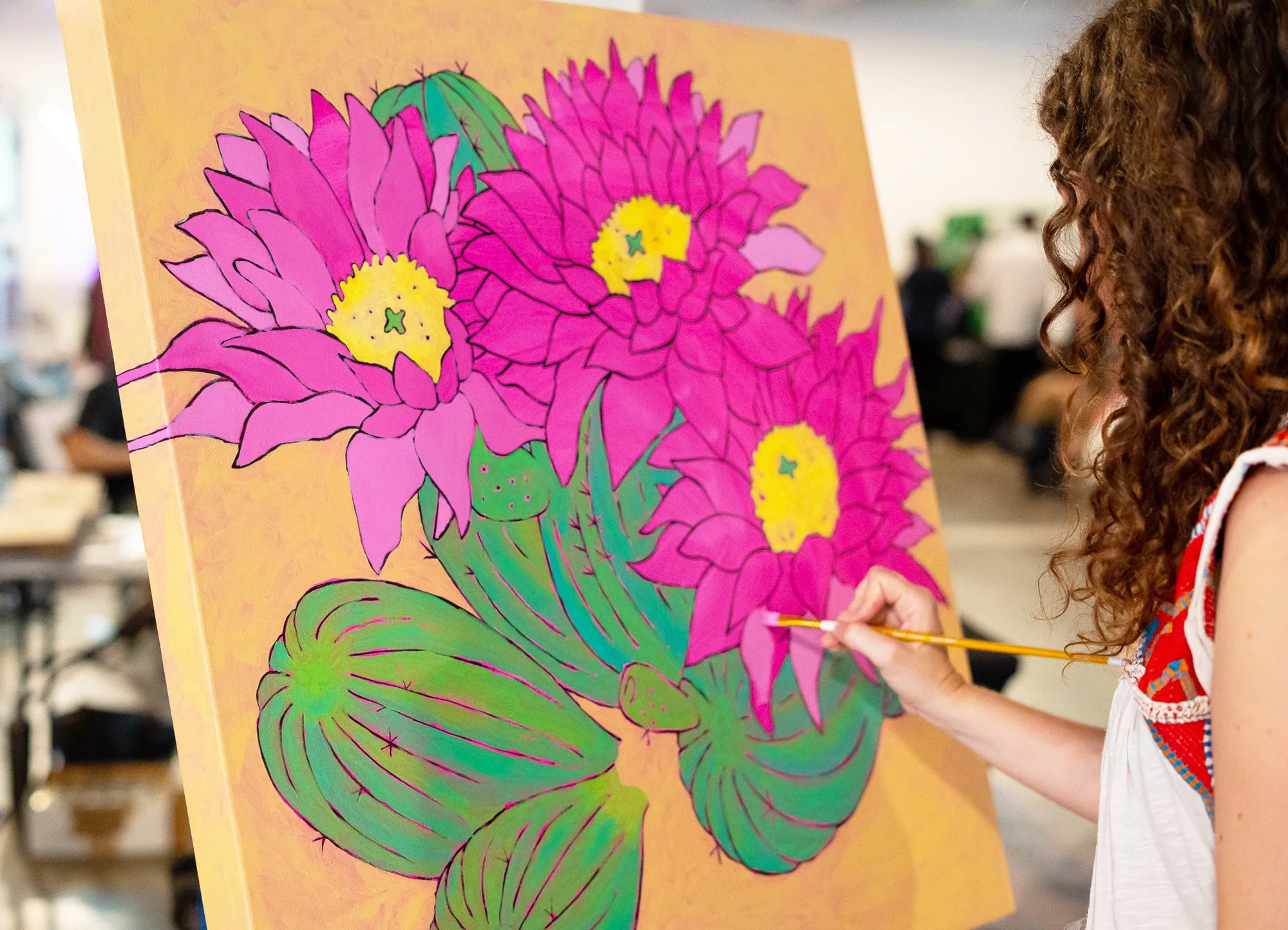 Nicole will demonstrate how she starts and finishes a large acrylic painting (in a single sitting!) inside her studio.